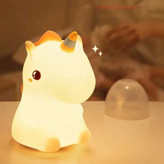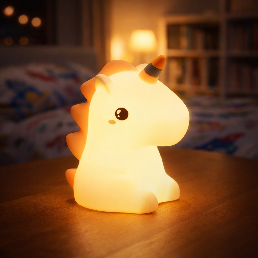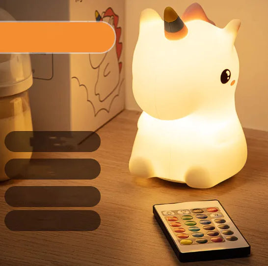 Meet Cornelia, your whimsical unicorn companion that transforms any space into a magical retreat. This delightfully squishy silicone friend emits a gentle, soothing glow across six vibrant rainbow hues. Simply tap Cornelia's head to cycle through colors, or upgrade to the remote control for effortless color-switching at your fingertips. With an impressive 10-hour runtime and convenient USB charging, Cornelia will bring magic into your room, night after night. Cornelia is the perfect companion for night-time adventures!